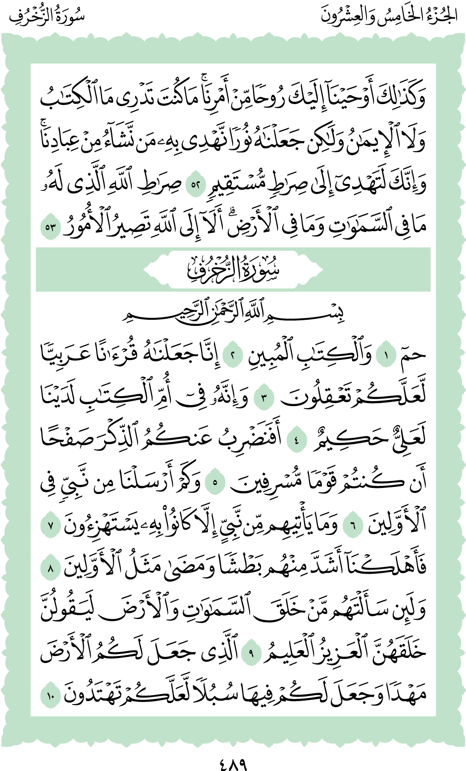 المكتبة الأكبرية: القرآن الكريم الصفحة: (489)