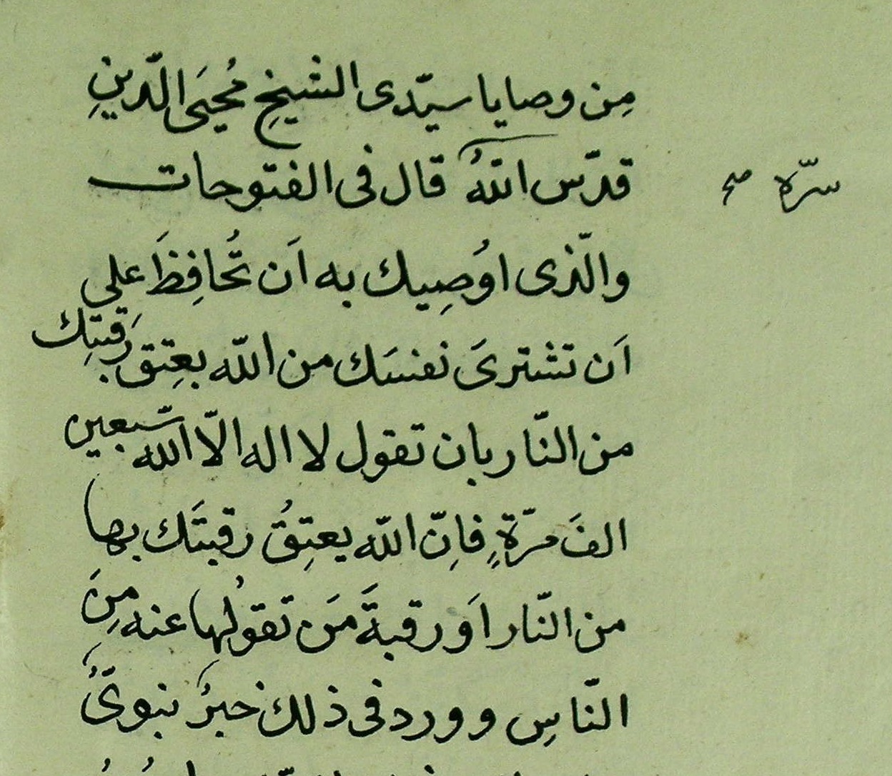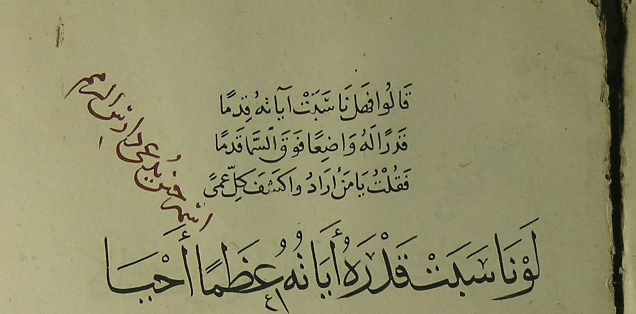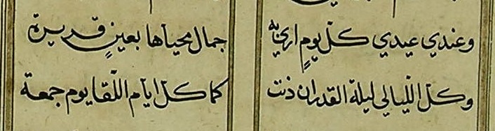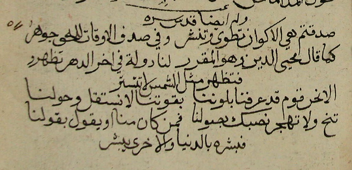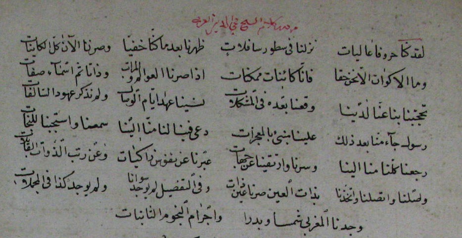 هذه القصيدة من كتاب نفث الأوان المنسوب للشيخ الأكبر محي الدين ابن العربي، وذكر الشيخ رضي الله عنه في الفتوحات المكية أن القاضي محي الدين ابن الزكي قال لما فتح صلاخ الدين الأيوبي مدينة حلب سنة تسع وسبعين وخمس مائة: وفتحك القلعة الشهباء في صفر... مبشرٌ بفتوح القدس في رجب، فكان فتح القدس كما قال في شهر رجب بعد أربع سنوات، عندئذ قيل لمحيي الدين: من أين لك ذلك؟ فقال: أخذته من تفسير ابن برجان في قوله تعالى: {ألم (1) غُلِبَتِ الرُّومُ (2) فِي أَدْنَى الْأَرْضِ وَهُمْ مِنْ بَعْدِ غَلَبِهِمْ سَيَغْلِبُونَ (3) فِي بِضْعِ سِنِينَ} [الروم:1-4].(من مخطوطة لالا إسماعيل 558 - اللوحة الأولى)Feb 17, 2021 11:11:23am Feb 17, 2021 3:11:07pm Feb 17, 2021 4:04:08pm أوعِدوني أو عِدوني وامطُلوا *** حُكْمٌ دين الحُبّ دَينُ الحِبّ لَيْFeb 23, 2021 11:04:02pm Feb 25, 2021 1:27:36am Feb 25, 2021 6:35:36pm Feb 26, 2021 9:03:34pm