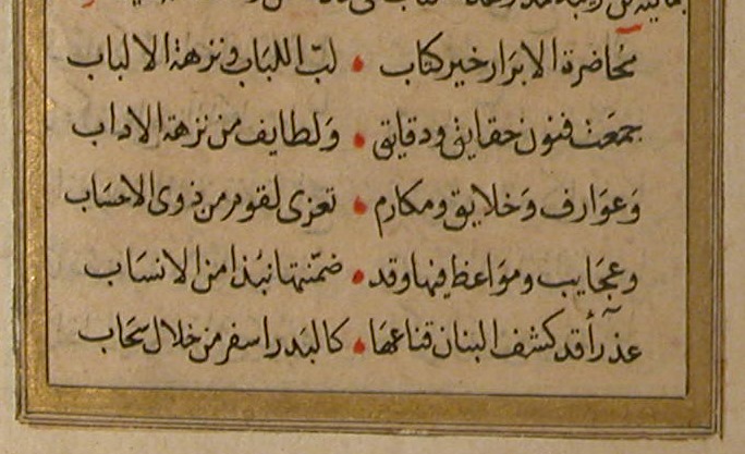 عذراء قد كشف البيان قناعها *** كالبدر أسفر من خلال سحابمحاضرة الأبرار خير كتاب *** لبّ اللباب ونزهة الألباب