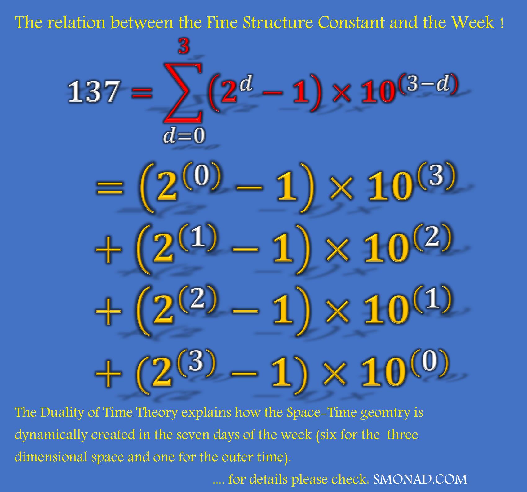 http://www.singlemonad.com/index.php/en/monad-2/6-the-fine-structure-constant-and-the-week