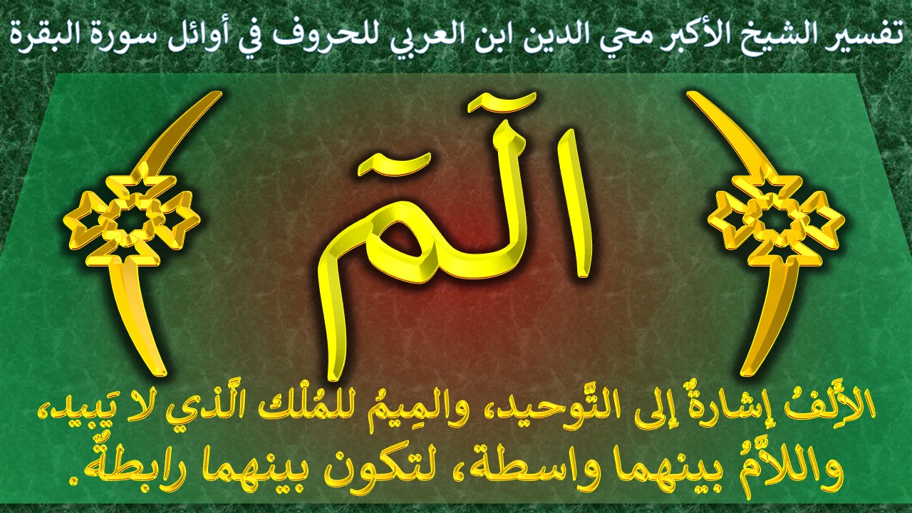 من تفسير سيدي الشيخ الأكبر محي الدين ابن العربي لفواح سورة البقرة، في الباب الثاني من كتاب الفتوحات المكية (https://www.youtube.com/watch?v=sp5efMylf98).Sep 25, 2022 2:41:28pm