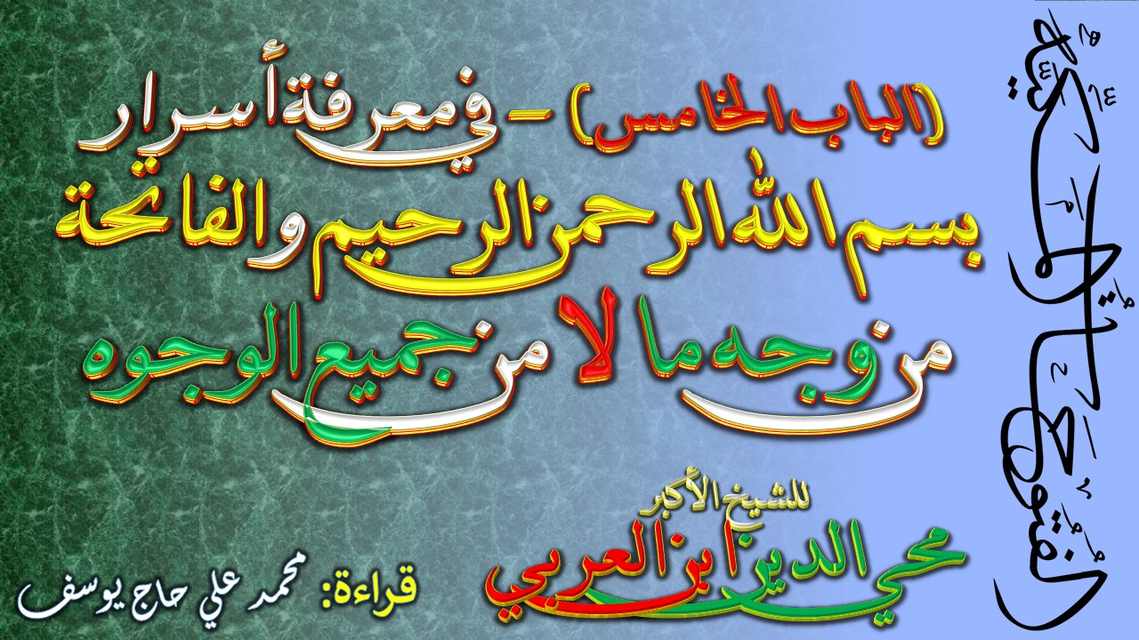 قريبا إن شاء الله تعالى: قراءة الباب الخامس من كتاب الفتوحات المكية لسيدي الشيخ الأكبر محي الدين ابن العربي رضي الله عنه وأرضاه.