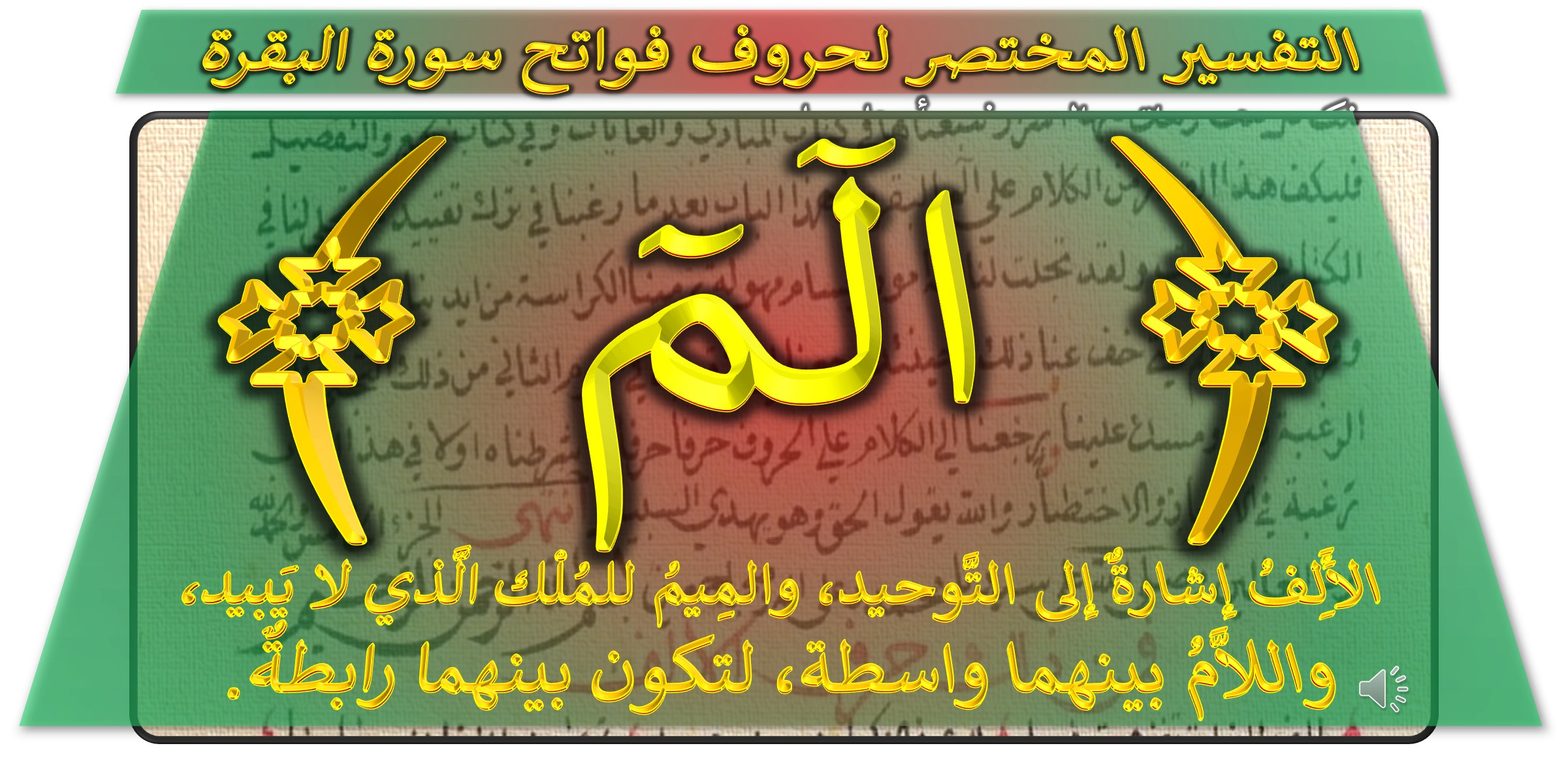 Timeline photos﴿ الۤمۤ ﴾: الأَلِفُ إشارةٌ إلى التَّوحيد، والمِيمُ للمُلْك الَّذي لا يَبيد، واللاَّمُ بينهما واسطة، لتكون بينهما رابطةٌ.