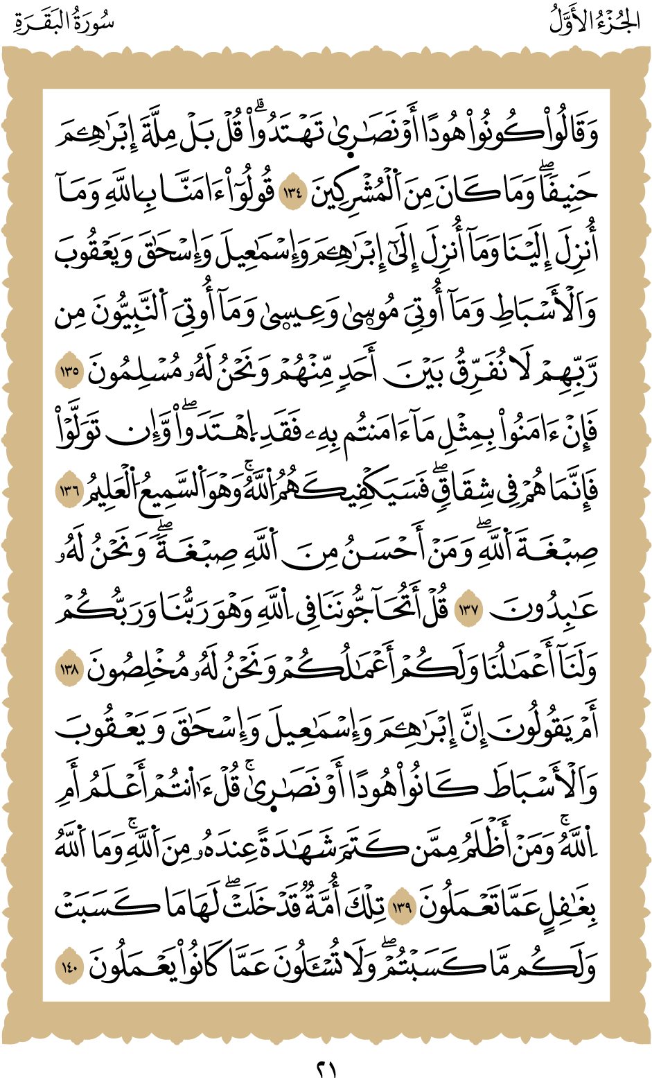المكتبة الأكبرية: القرآن الكريم الصفحة: (21)