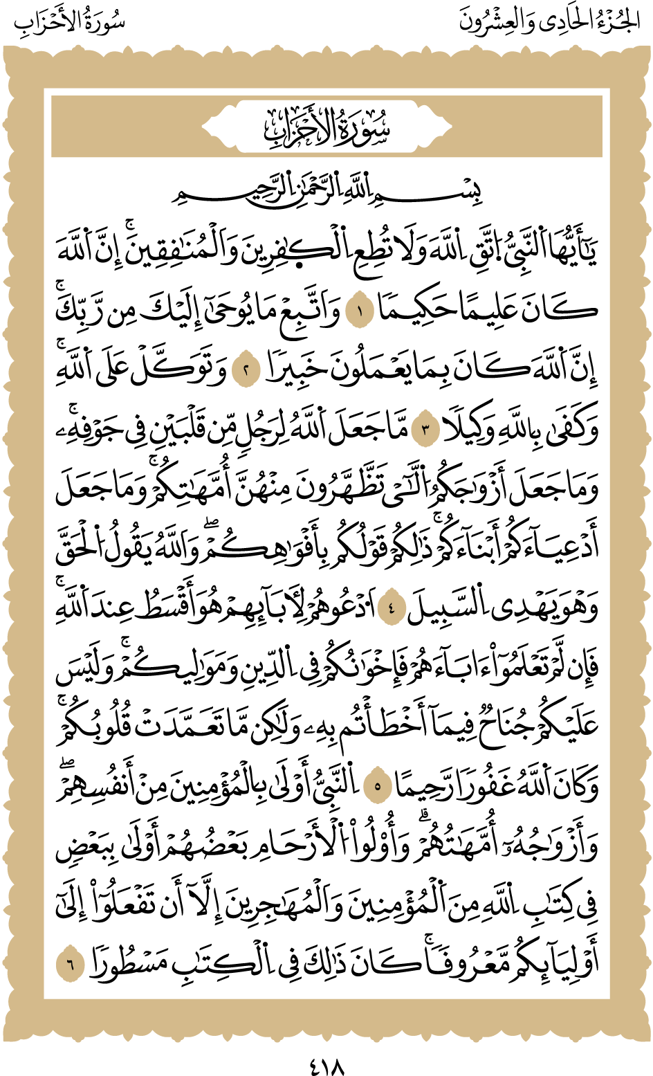 سورة الأحزاب (القراءة بصوت القارئ محمود خليل الحصري)