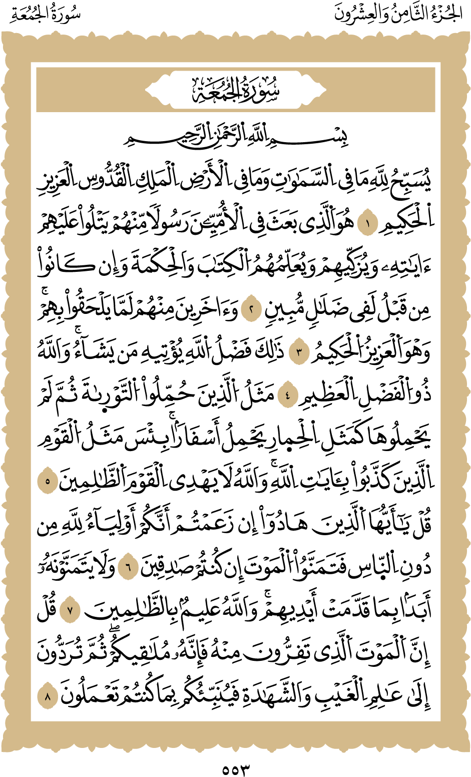 سورة الجمعة (القراءة بصوت القارئ محمود خليل الحصري)