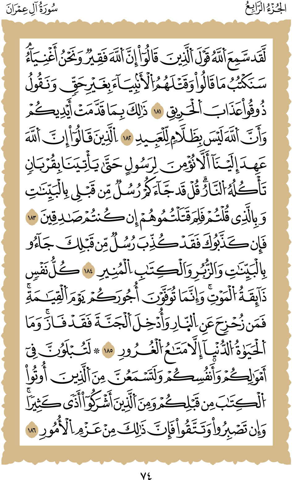 المكتبة الأكبرية: القرآن الكريم الصفحة: (74)