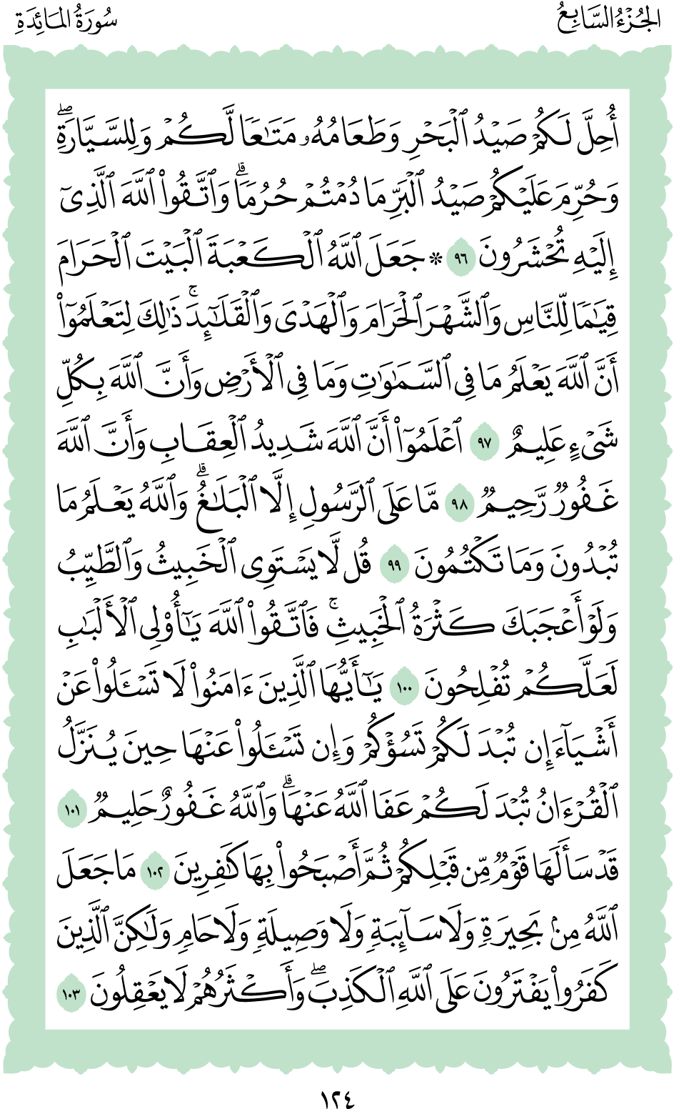المكتبة الأكبرية: القرآن الكريم الصفحة: (124)