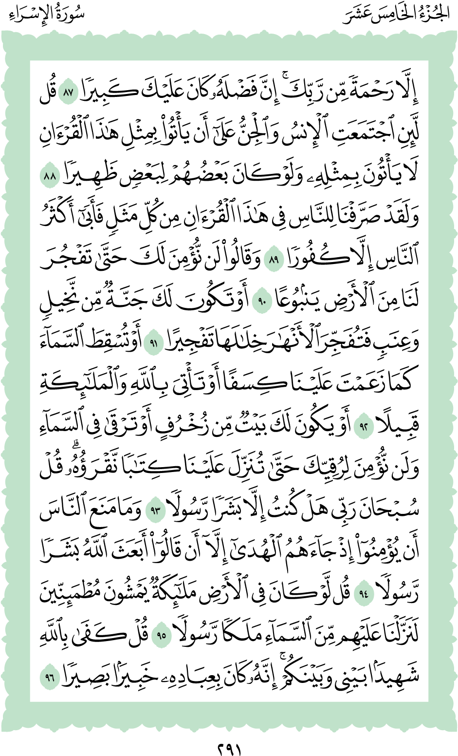 المكتبة الأكبرية: القرآن الكريم الصفحة: (291)