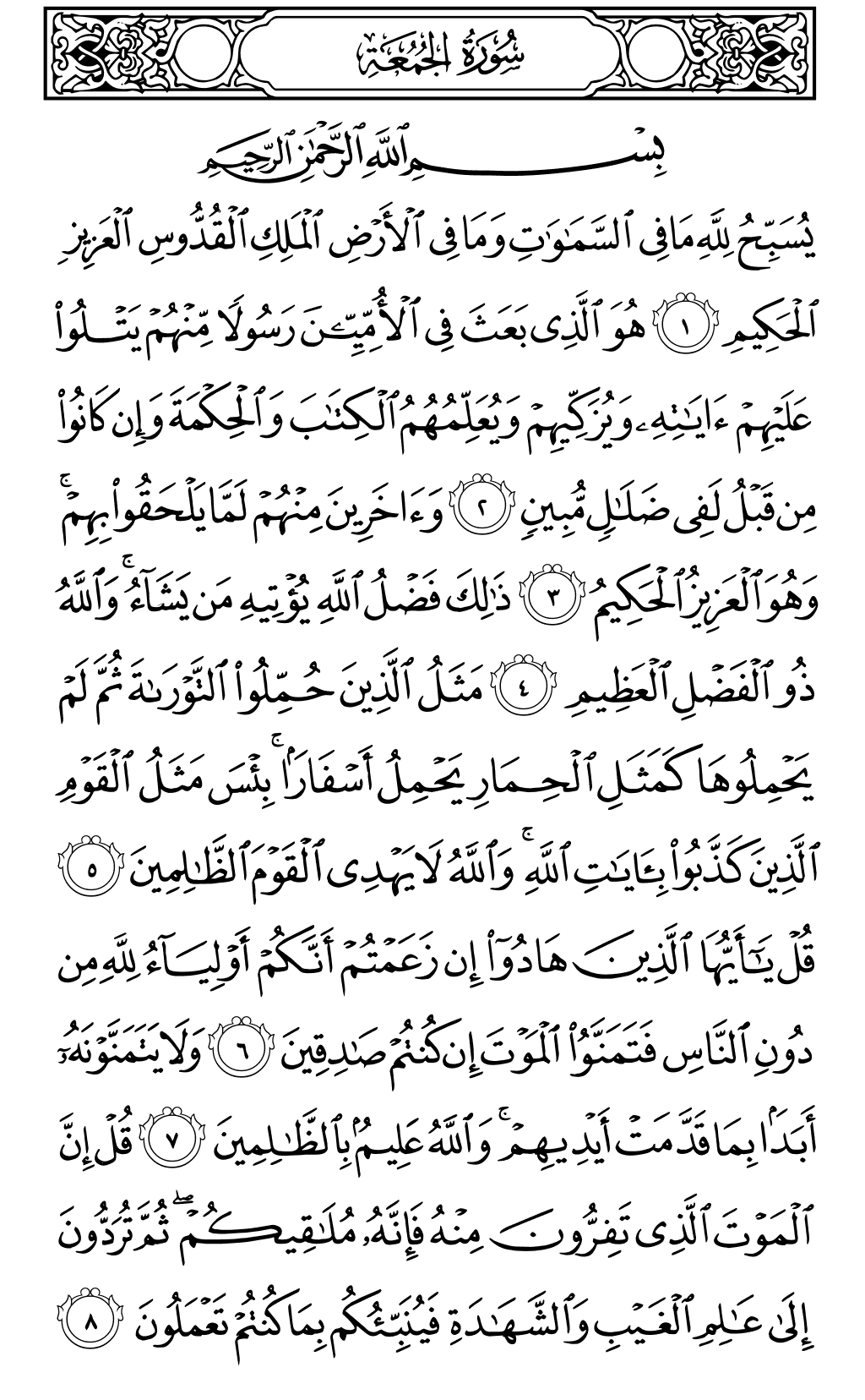 سورة الجمعة (القراءة بصوت القارئ محمود خليل الحصري)