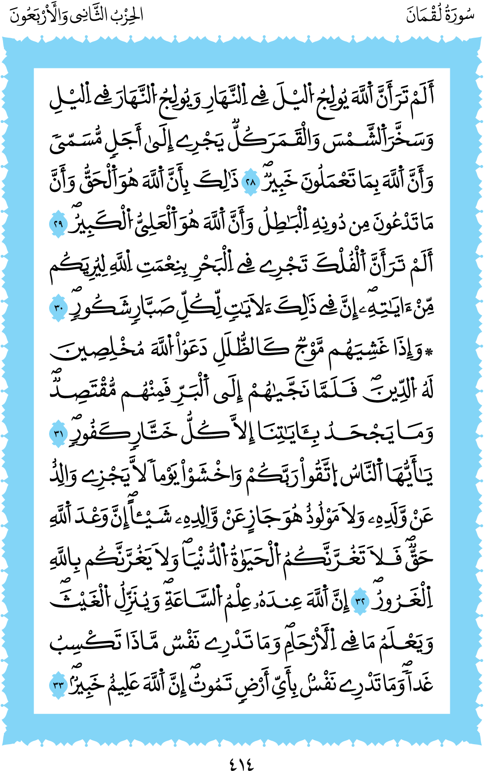 المكتبة الأكبرية: القرآن الكريم الصفحة: (414)
