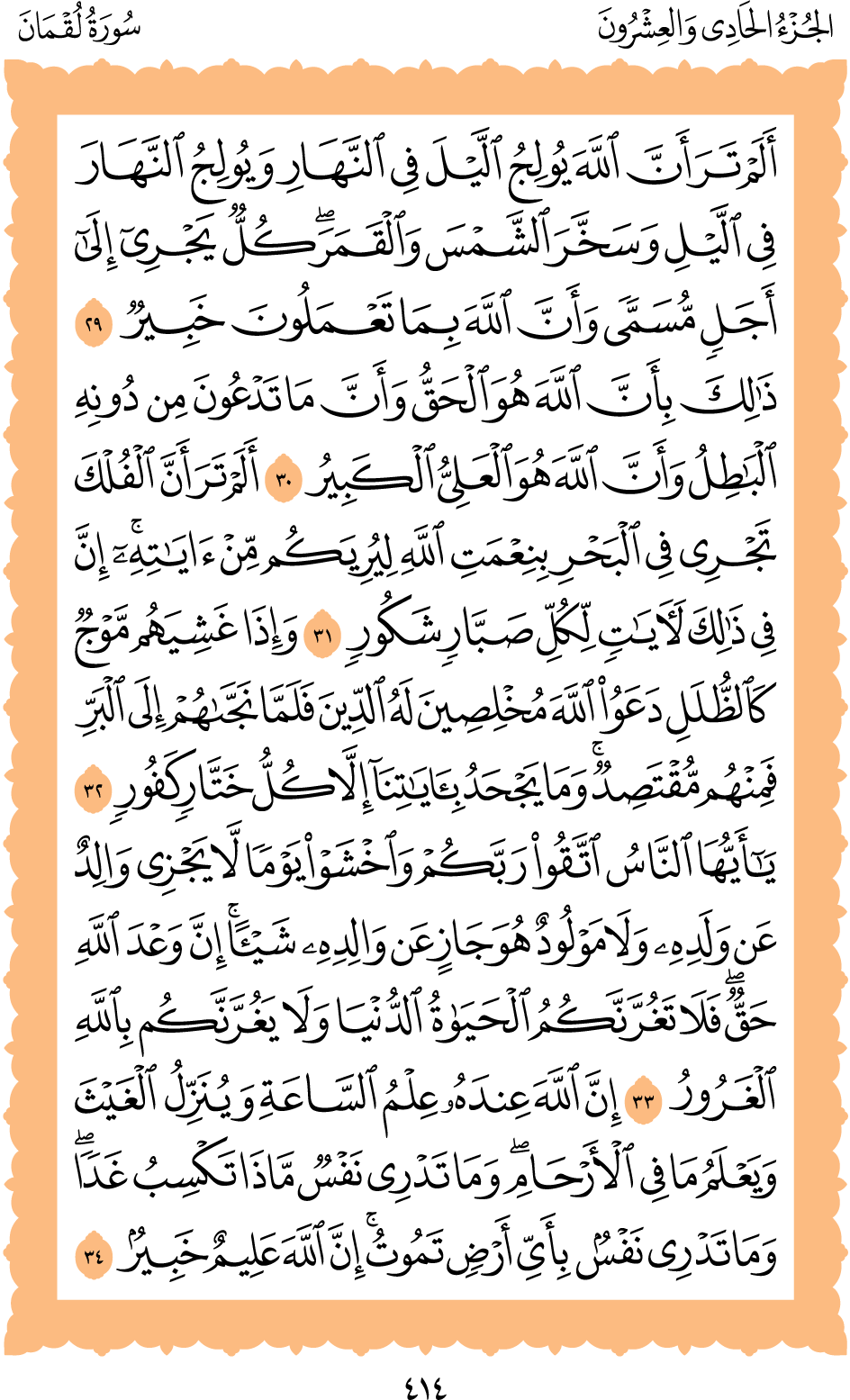 المكتبة الأكبرية: القرآن الكريم الصفحة: (414)