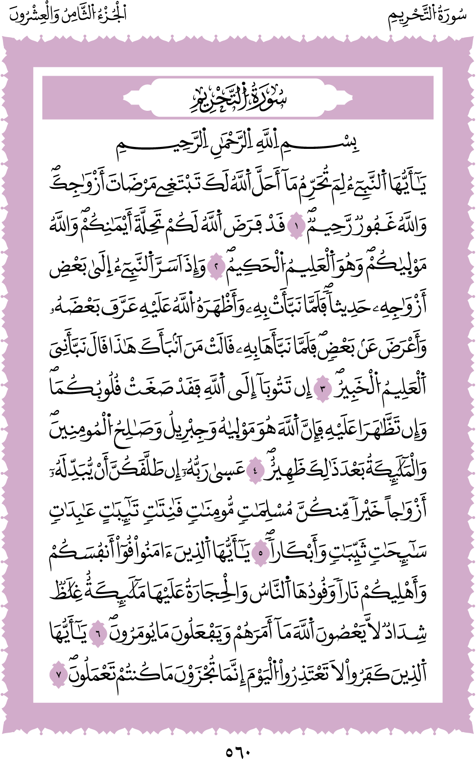 المكتبة الأكبرية: القرآن الكريم الصفحة: (560)